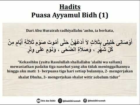 Wahai Abu Dzar jika engkau mahu berpuasa 3 hari dalam sebulan maka berpuasalah pada 1314 dan 15 hari bulan. Kumpulan Hadist Tentang Puasa Ramadhan 30-57. Ayyamul Bidh dijelaskan puasa ini sebaiknya dilakukan pada tiga hari dalam setiap bulan yaitu tanggal 13 14 dan 15 tiap Tengah bulan hijriyah.